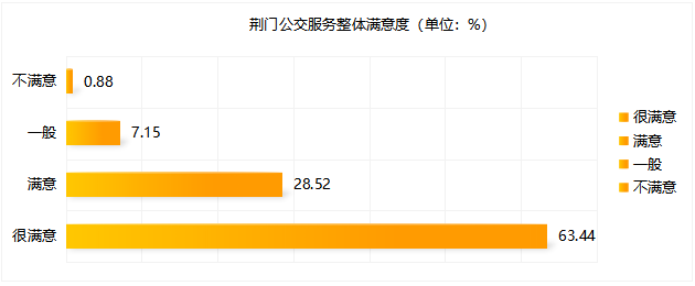 本次調(diào)查共收集有效問卷1471份,623條相關(guān)問題及建議。問卷涵蓋公交線網(wǎng)優(yōu)化、文明服務(wù)、換乘便捷度、候車時(shí)間、乘車舒適度、智能信息建設(shè)等多方面內(nèi)容。調(diào)查顯示,參與投票人群年齡結(jié)構(gòu)主要集中在18~59歲,其中以40~59歲為主體。(一)公交服務(wù)滿意度指標(biāo)及數(shù)值根據(jù)交通運(yùn)輸部GB/T 36953.2-2018城市公共交通乘客滿意度評(píng)價(jià)方法,公共交通乘客滿意度指乘客對(duì)公共交通服務(wù)質(zhì)量的滿意程度,評(píng)價(jià)程度設(shè)置為“很滿意”、“滿意”、“一般”與“不滿意”。問卷顯示荊門公交服務(wù)整體滿意度為91.96%。問卷顯示公交線網(wǎng)分布不均、線路不合理、換乘不便捷為主要服務(wù)訴求,公交線路分布不均為“不滿意度”投票最高問題;主干道公交優(yōu)先通行權(quán)為服務(wù)訴求投票最高關(guān)注點(diǎn)。 此次問卷調(diào)查,感謝廣大市民乘客的積極參與,市公交集團(tuán)將結(jié)合實(shí)際,認(rèn)真聽取、采納乘客提出的意見及建議,予以改進(jìn): 關(guān)于線路運(yùn)營(yíng)方面,對(duì)5路線(圣境山—海慧)、88路線(東寶碧桂園—楊家橋)、58路線(碧桂園北—漳河新區(qū)政務(wù)中心)、59路線(荊楚理工學(xué)院—掇刀區(qū)政務(wù)中心)早中晚客流高峰期加密營(yíng)運(yùn)班次和增設(shè)區(qū)間班次,對(duì)33路線(楚天學(xué)校—興化三路東)、69路線(雙喜小學(xué)—園博園東門)、13路線(牌樓—園博園西門)進(jìn)行線路優(yōu)化,方便沿線居民出行需求;近期擬開通碧桂園翡翠公館至長(zhǎng)崗萬人社區(qū)、東寶政務(wù)中心至市政務(wù)中心公交線路,具體方案正逐步規(guī)劃中。