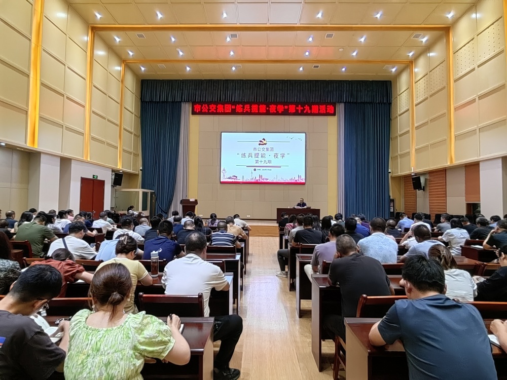 為深入開(kāi)展“提能力、轉(zhuǎn)作風(fēng)、抓落實(shí)”活動(dòng),7月6日晚,市公交集團(tuán)南站禮堂燈火通明,座無(wú)虛席,黨委班子成員、中層干部及機(jī)關(guān)工作人員集聚一堂,常態(tài)化開(kāi)展“夜學(xué)”活動(dòng)。