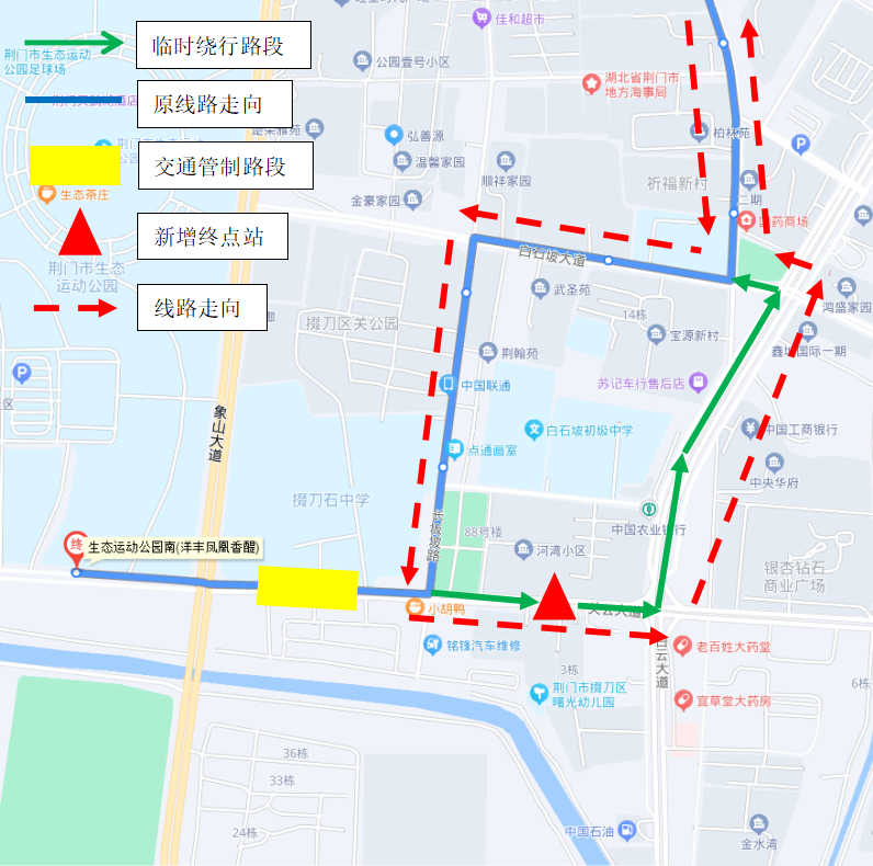 取消站點(diǎn):掇刀高中、生態(tài)運(yùn)動(dòng)公園南(鳳凰香醍)