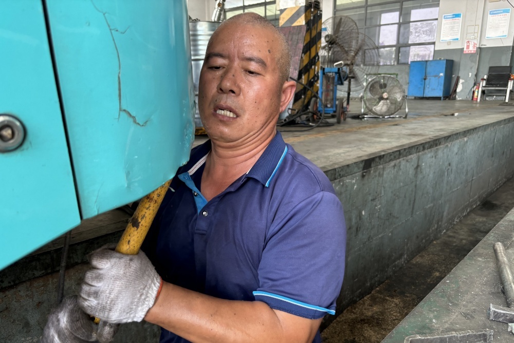 風(fēng)扇吹不散車(chē)間悶熱,他全神貫注,手中工具穩(wěn)穩(wěn)擰動(dòng),只為公交車(chē)能盡快修復(fù)。