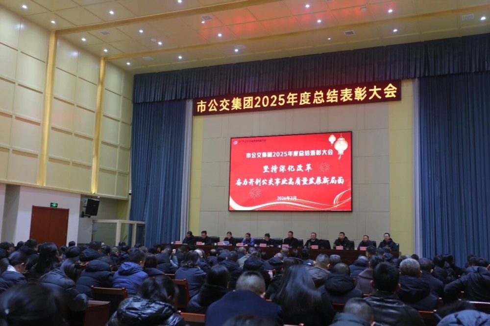 2026年2月9日,市公交集團(tuán)2025年度總結(jié)表彰大會(huì)在集團(tuán)三公司會(huì)議室順利召開(kāi)。本次大會(huì)全面回顧了2025年及"十四五"時(shí)期集團(tuán)的發(fā)展成果,表彰了先進(jìn)典型,部署了"十五五"及2026年的重點(diǎn)工作,為集團(tuán)高質(zhì)量發(fā)展凝聚奮進(jìn)力量。市政府國(guó)資委黨委委員、副主任鄧興權(quán),市交通運(yùn)輸局黨組成員、副局長(zhǎng)李洪震,市客運(yùn)管理處黨總支書(shū)記、處長(zhǎng)劉來(lái)斌應(yīng)邀出席會(huì)議。集團(tuán)黨委班子全體成員、全體中層干部、機(jī)關(guān)工作人員、二級(jí)單位一般管理人員以及獲表彰的單位代表和個(gè)人參加了會(huì)議。大會(huì)由集團(tuán)黨委副書(shū)記、總經(jīng)理李曉麗主持。