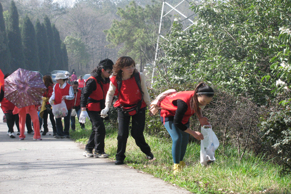 3月7日,“慶三八”組織女工到東寶山義務(wù)撿拾垃圾活動