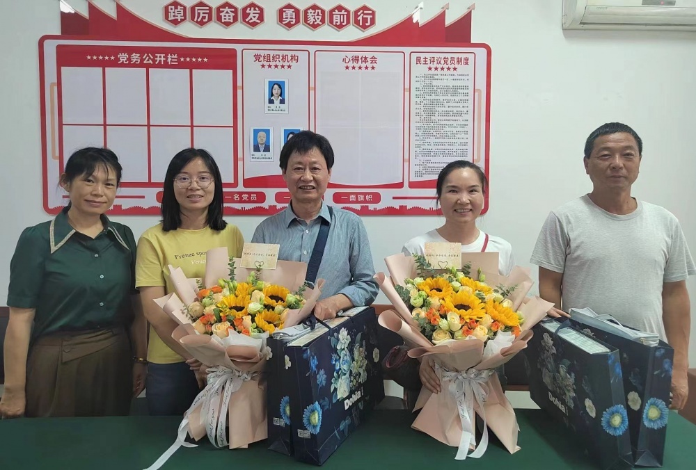營業(yè)中心班子各自回顧起與兩位退休職工一起工作的美好時光,大家暢所欲言,暖心的話語,觸動著彼此,期盼退休后繼續(xù)關(guān)心、幫助、支持公交事業(yè)的發(fā)展,?!盎丶摇笨纯?。隨后為姚開忠、胡玲玲獻上鮮花并合影留念。