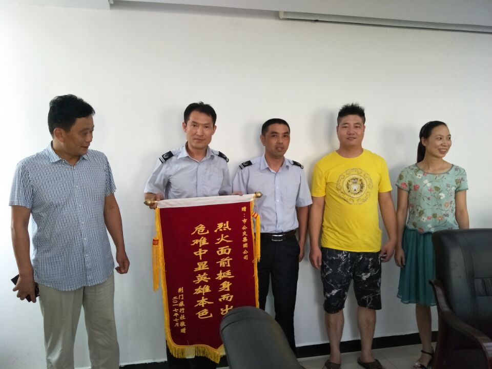 7月27日,荊門市旅行社出租汽車公司負(fù)責(zé)人及鄂H0A073的駕駛員專程來(lái)到荊門公交集團(tuán)公司,為果斷義舉滅火的公交陳旭師傅送上了一面“烈火面前挺身而出,危難中顯英雄本色”錦旗。