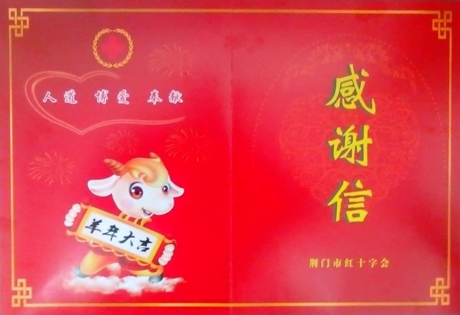 孟麗華收到荊門市紅十字會(huì)感謝信