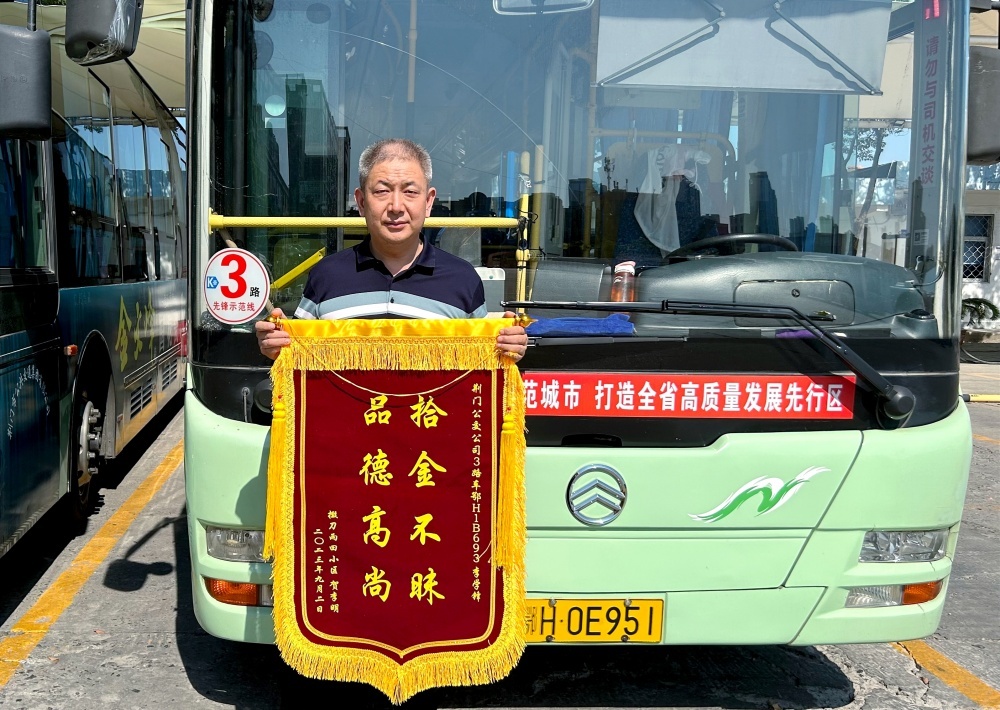 9月4日,市民賀先生拿著一副寫有“拾金不昧 品德高尚”的錦旗交給市公交集團(tuán)二公司相關(guān)負(fù)責(zé)人手上,希望轉(zhuǎn)交給3路李學(xué)鋒師傅,言語(yǔ)間滿是感激。