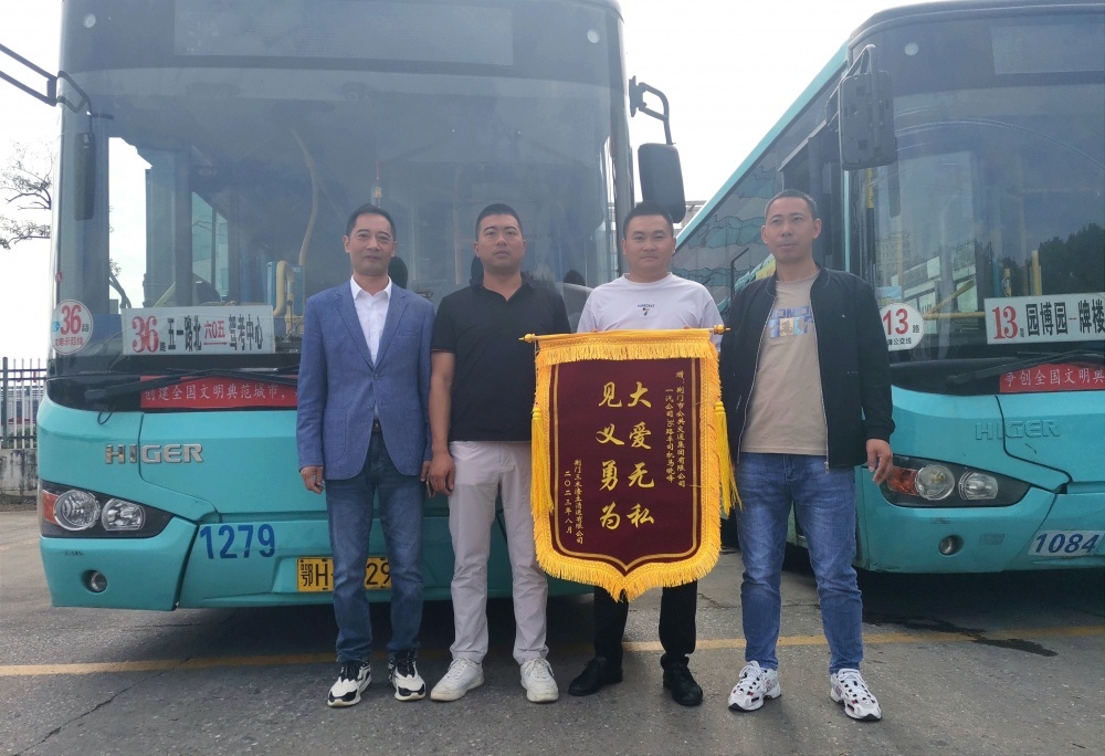 8月28日,貨車司機(jī)帶著印有“大愛(ài)無(wú)私 見(jiàn)義勇為”的錦旗,再次來(lái)到市公交集團(tuán),親手將錦旗送到馬曉峰手中,真誠(chéng)地感謝馬曉峰見(jiàn)義勇為的高尚品德。
